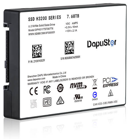 大普微H3200 7.68T U.2 PCIe 3.0 NVMe企業(yè)級(jí)SSD
